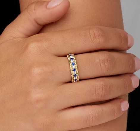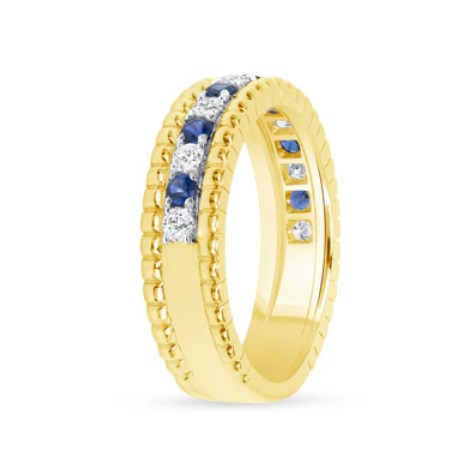 Alternating Round Brilliant Diamond and Sapphire Band in 18K Yellow Gold