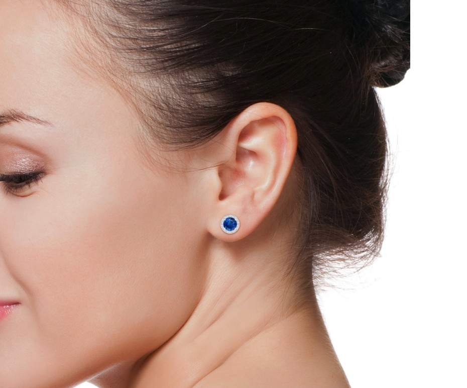 Vintage-Inspired Round Blue Sapphire Halo Stud Earrings