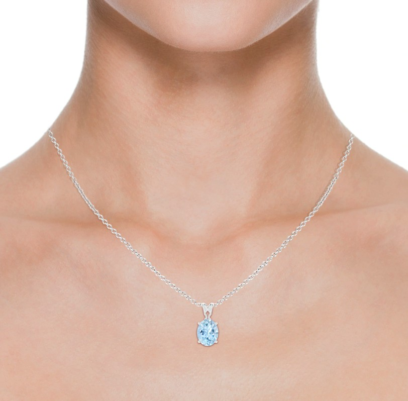 Vintage Inspired Solitaire Oval Aquamarine Pendant